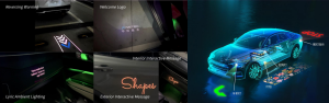 智能座舱:实现迎宾logo、倒车警示、车内交互投影等功能;